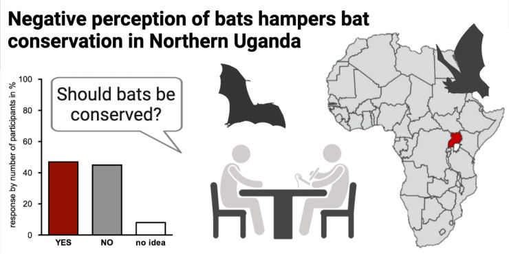 DEC 2022 – Our study “Negative Perception of Bats, Exacerbated by the SARS-CoV-2 Pandemic, May Hinder Bat Conservation in Northern Uganda“, let by Imran Ejotre, was published in the Special Issue Human-Bat Interactions and Sustainable Conservation in Sustainability.